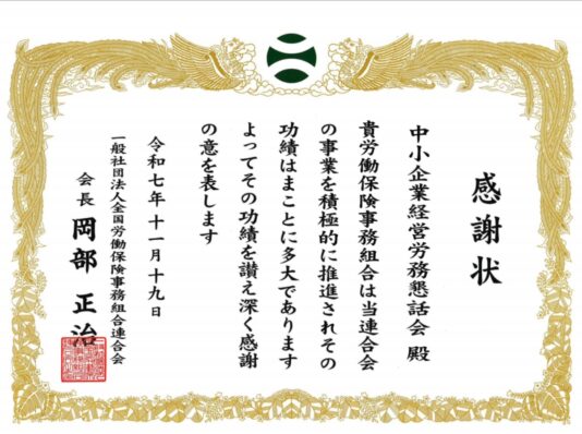 弊所附設の中小企業経営労務懇話会が受けた表彰について掲示いたします。